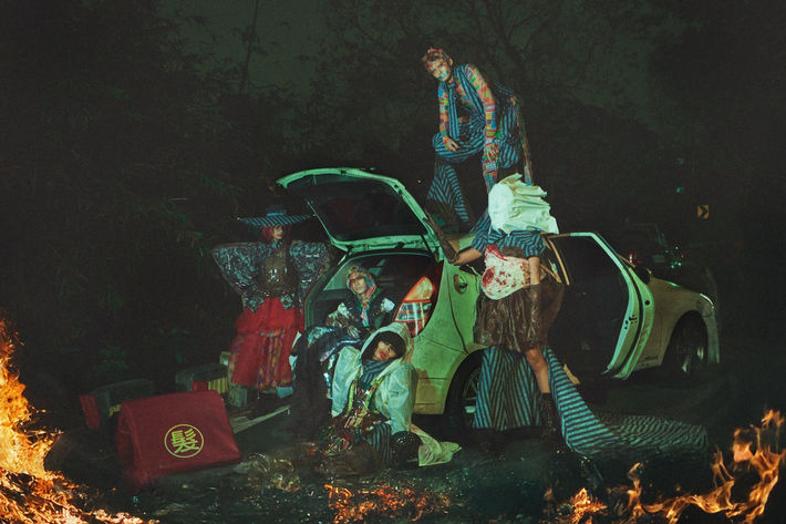 在設計上 ,整體廓形與材質皆取材自台灣傳統理髮廳作為主要靈感。以毛巾布與條紋布料為主要視覺元素,營造出懷舊又帶有一點詭異氛圍的氛圍。印花則是從理髮廳常見的報紙廣告轉化而來,細節中藏著我與家人之間滿滿的連結與對話,成為情感記憶的延伸